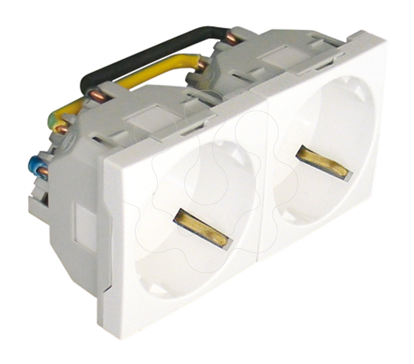 TOMADA DUPLA SCHUKO COM OBTURADOR - 4 MÓ,DULOS BRANCO