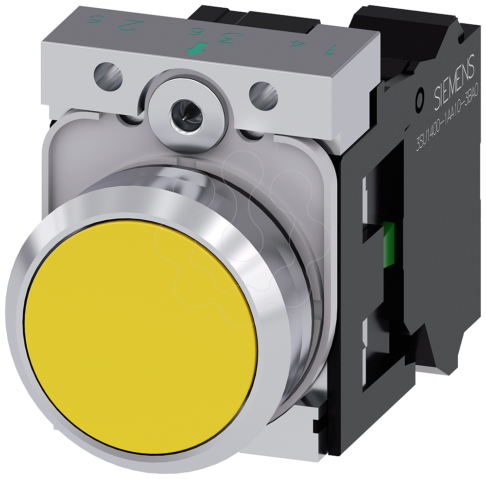botão, 22 mm, redondo, metal, de alto brilho, amarelo, botão de pressão, plano, tecla com retorno, com suporte, 1NA, conexão parafusada Botão de pressão SIRIUS ACT para a comutação e o comando de consumidores elétricos.Sob o nome de marca SIRIUS ACT, a Siemens disponibiliza um portfólio ímpar de aparelhos de comando e unidades de sinalização com aprovações de produto mundiais em três séries de design modernas em metal autêntico e robusto e plástico de alta qualidade.O inovador conceito de encaixe simplifica a montagem ao ponto de ser necessária apenas uma mão e nenhuma ferramenta especial. Como orifícios de montagem basta usar furos sem ranhura, pois já se encontra integrada uma proteção total contra torção.Graças ao tipo de proteção continuamente elevado, os aparelhos robustos são adequados para a indústria e a utilização no exterior. É mesmo possível a limpeza com jato de alta pressão. Nem pó, nem óleos ou lixívias agressivas podem perturbar a operação fiável.Além da fiação padrão, os aparelhos também podem ser ligados ao comando via PROFINET, AS-Interface ou IO-Link. Isso permite reduzir o trabalho de cablagem, minimizar as fontesde perigo e ganhar maior flexibilidade.O configurador online gráfico ajuda confortavelmente na seleção e no pedido de aparelhagens individuais, caixas e inscrições. Está disponível uma documentação abrangente (p. ex. manual, dados 3D, diagrama de conexão).Versões disponíveis: várias cores, com/sem iluminação, com/sem inscrição, acionamento por encaixe/contacto, diferentes alturas de botão de pressão e aro frontal.Nota: Aparelho completo, entrega inclui suporte e módulos.SIRIUS ACT - Performance in Action ao efetuar um comando e notificar. Simples de montar, simplesmente resistente, simplesmente perfeito.