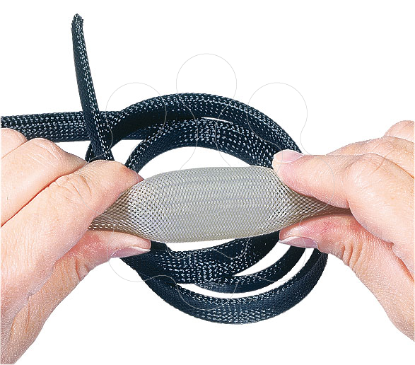 PLIOSIL PET-V0 8 - Manga Expansível Ø7-10mm PRETO - 300m. Manga trançada expansível PLIOSIL PET-V0 8 Bobine 300m Preto. Manga flexível expansível para utilização geral em cablagens e também para aplicações que requerem o cumprimento com o standard mais exigente anti-fogo UL94 V0.Fornecido em cor preta, numa bobine de 300m, é auto-extingível V0. Expande dos 7mm de diâmetro aos 10mm.Acessório para facilitar a passagem de cabos:https://www.youtube.com/watch?v=LvYhAk6Qquc