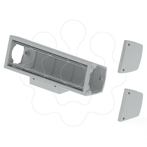 Caixa mobiliário Unex montagem fixa para 4 mecanismos em U24X. Para a eletrificação e ligação de todo tipo de mobiliário em salas amplas, com diversas possibilidades de alimentação (a partir do teto, chão ou parede) e liberdade de reinstalação. Dos comprimentos de guia articulada e um módulo ampliável sem limite permitem uma resposta a todas as necessidades. Uso de caixa para a proteção das tomadas de dados. Inclui-se parafusos e tampas laterais. Cor: Cinzento. Recomendadas ITED. Sistema versátil, adaptável a qualquer ambiente de escritório. Desenhado para fundir-se no ambiente, adapta-se de forma natural à estética dos equipamentos e mobiliário. Robustez na fixação ao mobiliário. A caixa fica fixada à prova de extração de mecanismos. Permite a ligação antes da montagem em obra. Quadro frontal removível que facilita a manipulação e cablagem de mecanismos. Tampas laterais montadas com parafusos. Liberdade de eleição e composição de mecanismos. Um só tamanho de caixa de mobiliário. O sistema de adaptadores de mecanismos em 2 peças oferece a possibilidade de instalar qualquer mecanismo habitual do mercado, com fiabilidade e facilidade de instalação reconhecidas. Fácil instalação, sólida fixação ao módulo e garantia IP4X.